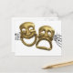 A musical score waving and bending behind iconic Comedy and Tragedy theater
