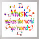 Music lovers will enjoy this colourful design with the music notes and the rainbow coloured words Music Makes the World Go 'Round.
