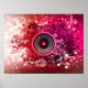 Music speaker and paint splatters poster