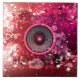 Colorful red and purple music speaker and paint splatters