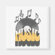 Retro style grunge "Music" text design illustration with vinyl record and music notes decoration