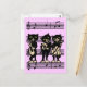 This is a 1930's vintage image of three black cats with green eyes playing their musical instruments.  They are making music with a saxophone, fiddle, and guitar.  The background is pale pink with a sheet of musical notes.  See my store for other products with this design.