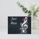 A colourful abstract of a white cleft note with a silver microphone, surrounded by music notes on a black background. Great for a singer, instrument player or someone who loves to listen to music.