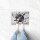 Trendy illustration of a guitar, notes, and vinyl on white marbled background