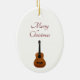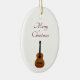 Merry Christmas ornament, with an acoustic guitar image on a white background. With elegant red typography lettering, you can customize with your own message. Great for adding a little classical music to your holiday tree.