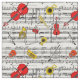 Repeated pattern of musical instruments on classical music score background (Deutsche Tanze and 7 Trios by Franz Schubert). Instruments include Contra Bass, Flute, Saxophone, Trumpet, Trombone, Violin, Cello, Tuba, Clarinet, Oboe, French Horn, Piccolo and Guitar.