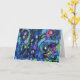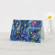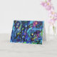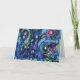 Abstract music art painting of musical notes floating around the canvas in soothing blues, bright lavender, and swirling green creating an artistic tribute to music and song. Personalize this fine art greeting or note card with your custom text and images to make special abstract painting card gifts!