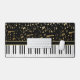 An elegant design for the pianist or keyboard player - featuring keyboard keys with golden coloured musical notes on a black background. The background colour can be changed to any colour to suit your own needs and style, Customize the text on the golden coloured strip between the piano keys and the music notes.