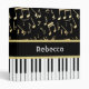 Musical Notes and Piano Keys Black and Gold Binder