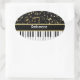 Musical Notes and Piano Keys Black and Gold Oval Sticker