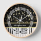 Musical Notes and Piano Keys Black and Gold Wall Clock