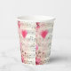 Paper cups with a elegant and nostalgic design. Music sheet decorated with a big pink heart and pink roses and wildflowers around the edges.