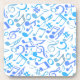 This image is a vibrant and playful pattern featuring various musical notes in shades of blue against a plain background. The notes are scattered randomly, creating a sense of rhythm and movement. The design includes treble clefs, sharps (#), flats (b), and traditional musical notes of varying sizes and shapes. The use of bold, blue colours and a transparent background creates a cheerful and energetic aesthetic. The image evokes a sense of joy, creativity, and the power of music.