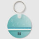 A cool design featuring white musical notes dancing about on a teal background. Customize with your initials as desired.