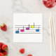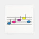 A pretty design of blue, pink, purple and yellow music notes on a black staff