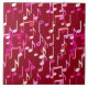 A cascade of musical notes in fuchsia pink, pale pink, beige and cream on a deep burgundy wine background
