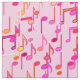 A cascade of musical notes in shades of pink, orchid, coral and magenta on a soft, shell pink background