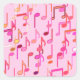 A cascade of musical notes in shades of pink, orchid, coral and magenta on a soft, shell pink background