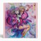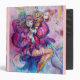 Colourful, whimsical,funny pink clown playing bugle with an expressive owl and joyful musical notes,flowers,leaves in vibrant red,fuchsia,violet,purple,blue,white colours, watercolor painting by Bulgan Lumini (c)