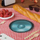Blue turquoise music speaker. A cool paper plate for music lovers.