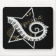 Unusual musical design featuring swirling piano keys with gold musical notes flowing from the centre of the keys on a black star. This design would make the perfect gift for the piano lover and is available on a collection of gifts and paper products. sgb01