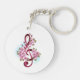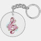 Pink treble clef with delicate, detailed pink Japanese cherry blossoms against white background painted over with light blue paint Blooming pink sakura.