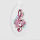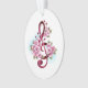 Pink treble clef with delicate, detailed pink Japanese cherry blossoms against white background painted over with light blue paint Blooming pink sakura.
