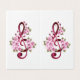 Pink treble clef with delicate, detailed pink Japanese cherry blossoms against white background painted over with light blue paint Blooming pink sakura.