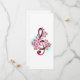 Pink treble clef with delicate, detailed pink Japanese cherry blossoms against white background painted over with light blue paint. Blooming pink sakura.