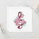 Pink treble clef with delicate, detailed pink Japanese cherry blossoms against white background painted over with light blue paint. Blooming pink sakura.