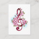 Pink treble clef with delicate, detailed pink Japanese cherry blossoms against white background painted over with light blue paint. Blooming pink sakura.
