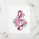 Pink treble clef with delicate, detailed pink Japanese cherry blossoms against white background painted over with light blue paint. Blooming pink sakura.