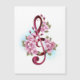Pink treble clef with delicate, detailed pink Japanese cherry blossoms against white background painted over with light blue paint. Blooming pink sakura.