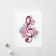 Pink treble clef with delicate, detailed pink Japanese cherry blossoms against white background painted over with light blue paint. Blooming pink sakura.