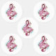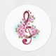 Pink treble clef with delicate, detailed pink Japanese cherry blossoms against white background painted over with light blue paint. Blooming pink sakura.