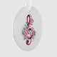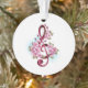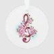 Pink treble clef with delicate, detailed pink Japanese cherry blossoms against white background painted over with light blue paint Blooming pink sakura.