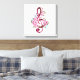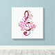 Pink treble clef with delicate, detailed pink Japanese cherry blossoms against white background painted over with light blue paint. Blooming pink sakura.