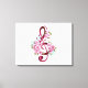 Pink treble clef with delicate, detailed pink Japanese cherry blossoms against white background painted over with light blue paint. Blooming pink sakura.