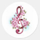 Musical treble clef notes with Sakura flowers Classic Round Sticker