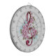Pink treble clef with delicate, detailed pink Japanese cherry blossoms against white background painted over with light blue paint. Blooming pink sakura.