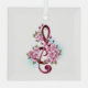 Musical treble clef notes with Sakura flowers Glass Ornament