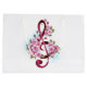 Pink treble clef with delicate, detailed pink Japanese cherry blossoms against white background painted over with light blue paint. Blooming pink sakura.