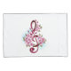 Pink treble clef with delicate, detailed pink Japanese cherry blossoms against white background painted over with light blue paint. Blooming pink sakura.