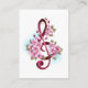 Pink treble clef with delicate, detailed pink Japanese cherry blossoms against white background painted over with light blue paint. Blooming pink sakura.