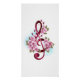Pink treble clef with delicate, detailed pink Japanese cherry blossoms against white background painted over with light blue paint. Blooming pink sakura.
