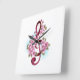 Musical treble clef notes with Sakura flowers Square Wall Clock