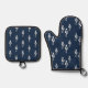 Musical Treble Clef Pattern Navy Blue Oven Mitt & Pot Holder Set