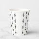 Musical symbol paper cup with a black treble clef pattern design on a white background. Great for planning receptions after concerts and recitals.