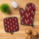 Cute oven mitt and pot holder set, with a simple white treble clef pattern on a red background. A fun musical item to add a touch of classical music to your kitchen and cooking supplies.