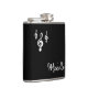 Simple musical flask, with a treble clef pattern and script typography. This black and white design has customizable lettering where your can add your own text. A fun music inspired item to celebrate in style.